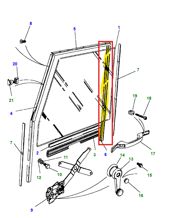 Verticaal profiel 5mm glas voor portier met draairamen.