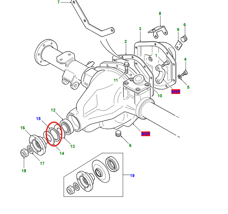 Olie keerring achter differentieel Salisbury.
