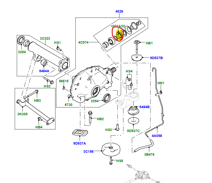 Oliekeerring voorashuis differentieel.