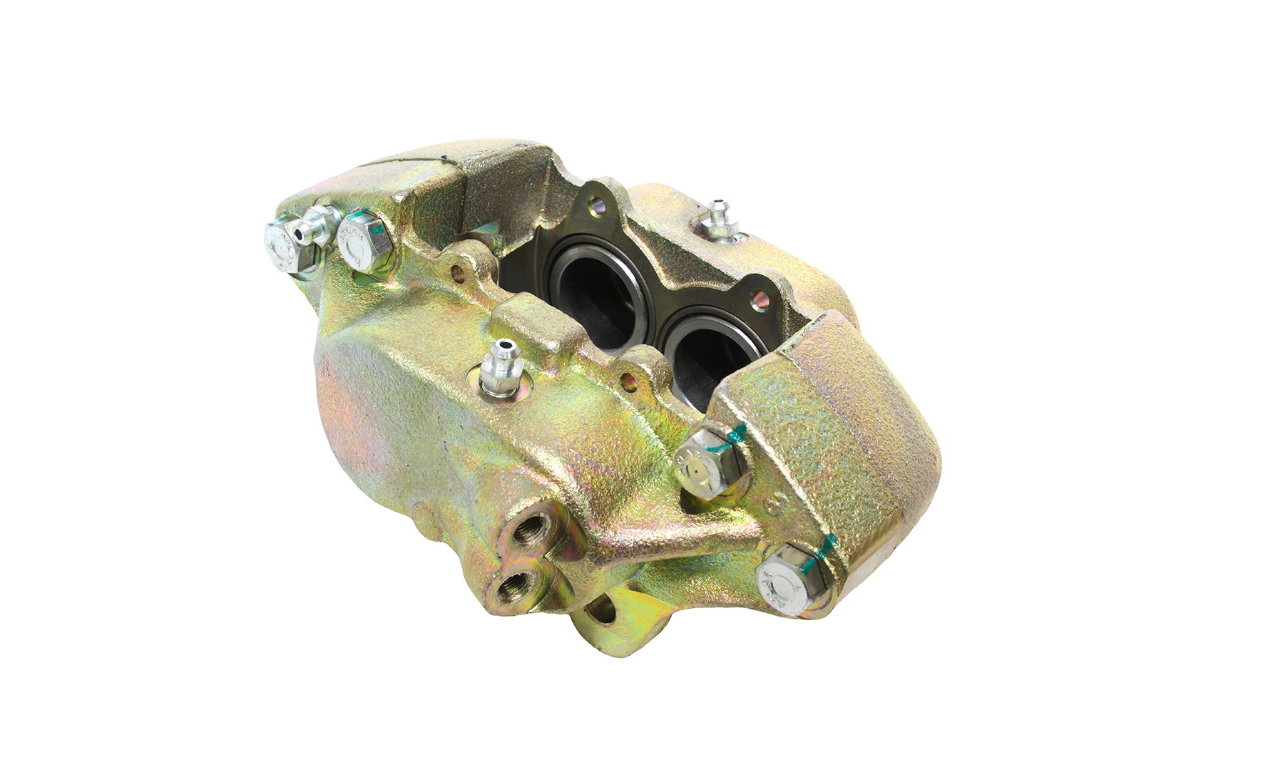 Remklauw links oor met vaste remschijven (niet geventileerd).