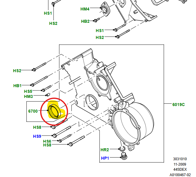 Oliekeerring krukas 4.4L V8.